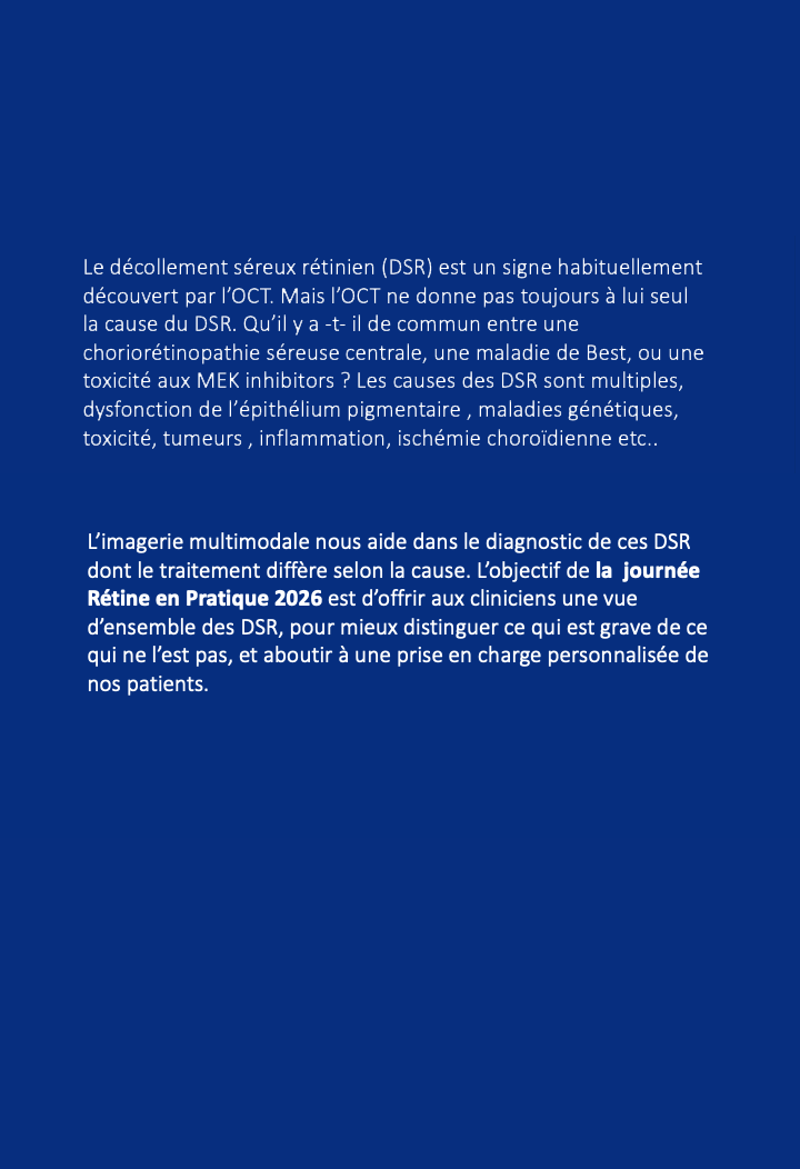Le liquide sous-rétinien persistant (PSF), une complication connue après une chirurgie d’indentation semble associé à des altérations de l’architecture choroïdienne, en particulier dans les yeux avec pachychoroide. L’indentation mécanique de la sclère peut comprimer les veines vortiqueuses, perturber le mécanisme qui régule la dynamique des fluides choroïdiens et contribuer à la congestion veineuse, avec des implications pour les résultats visuels à long terme. Si les adaptations vasculaires atténuent souvent ces effets grâce au développement d’une circulation collatérale, dans certains cas, en particulier avec les cerclages, des altérations choroïdiennes persistantes peuvent contribuer à la persistance du liquide sous rétinien.